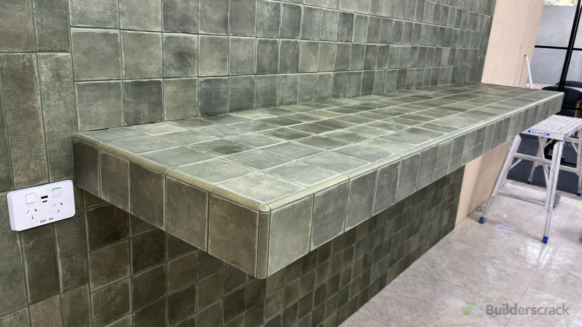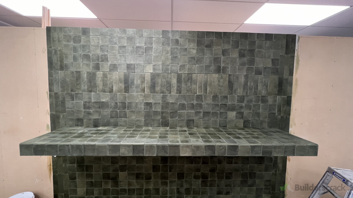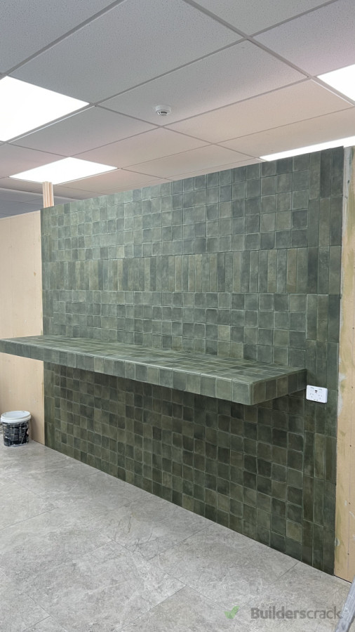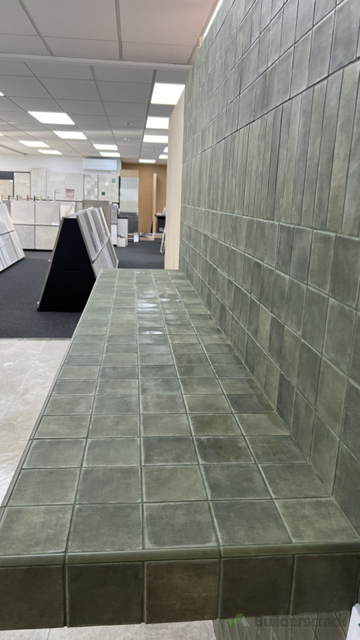 Subway tiles with green grout colour at Showroom Tile Depot Head Office