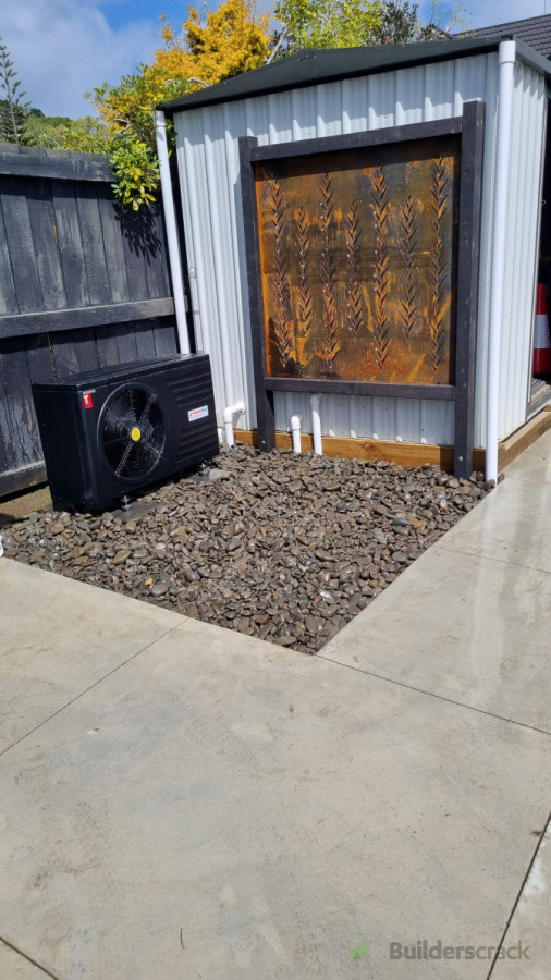 Removed old pool, large tree, repositioned garden shed, new pool, concrete surrounds, drainage, fencing, ready lawn, hedging, installing artwork.