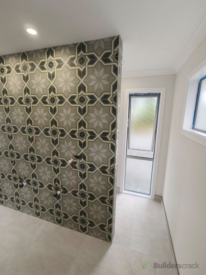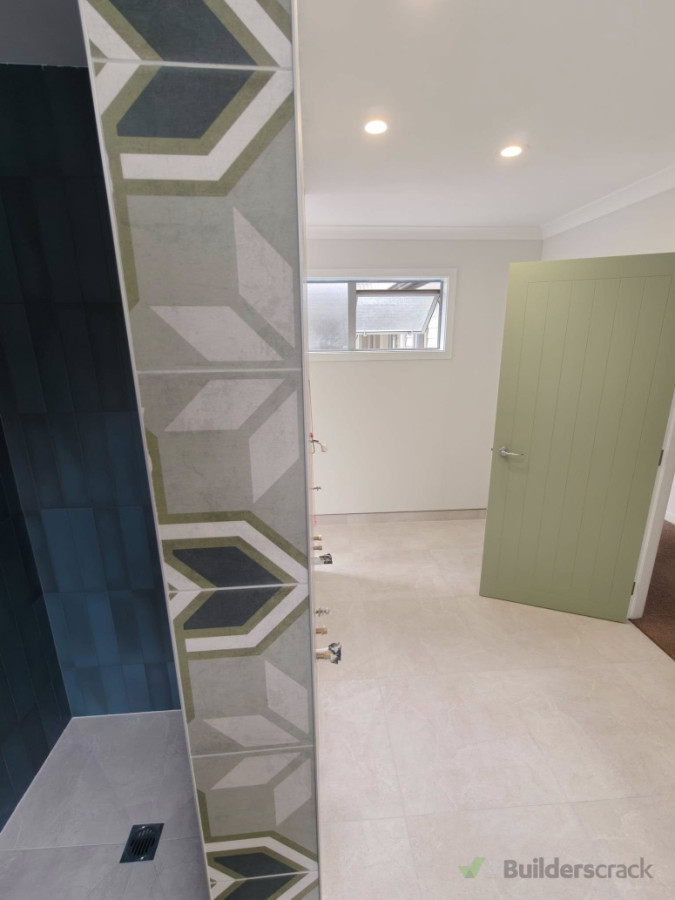 Over the Christmas break, we managed the full renovation of this space, replacing the shower, laying new floor tiles, installing all-new feature wall tiling, and giving it a fresh repaint. The bold geometric tile feature brings character, while the soft-toned flooring and sleek vertical shower tiles create a calm, contemporary feel.