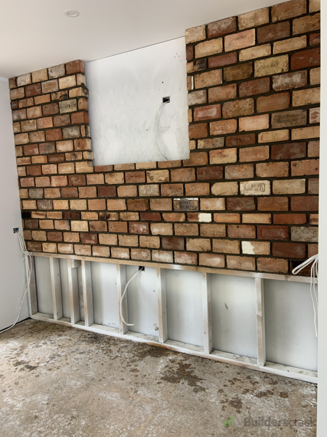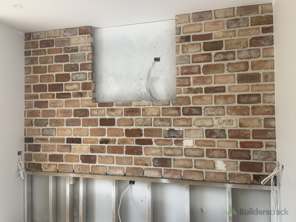 Kitchen splashback using recycled bricks with stamped feature bricks