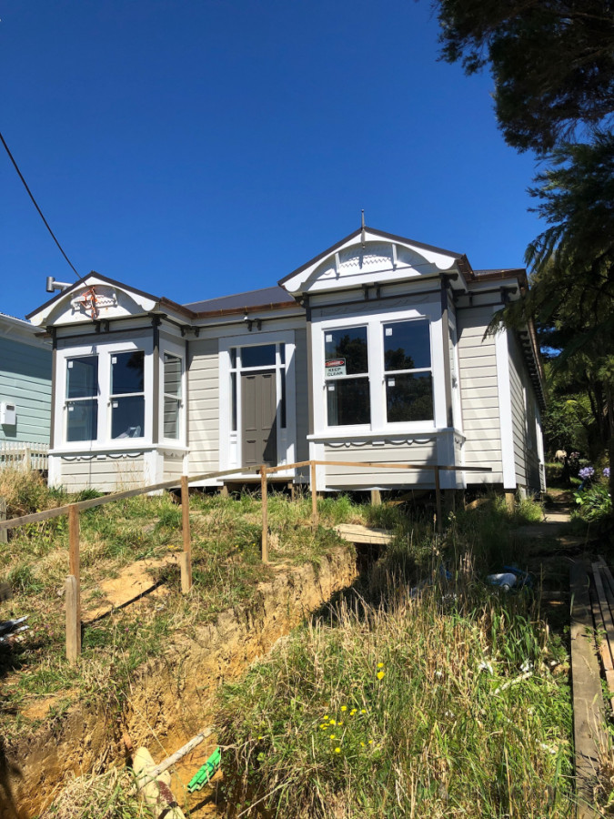 This house had been abandoned for 25 years when we arrived on site. We tore down the existing lean to and got to work. A 100m2 extension was added on the back, all kept in period style. We redid all decorative timber elements including gable scalloped features, corbel blocks, finials window fret work. We added these features to all the new parts of the house too. We managed to save the existing double hung windows and double glazed them on site. We then gave the interior and complete work over, including rearranging walls to achieve the most functional layout possible.