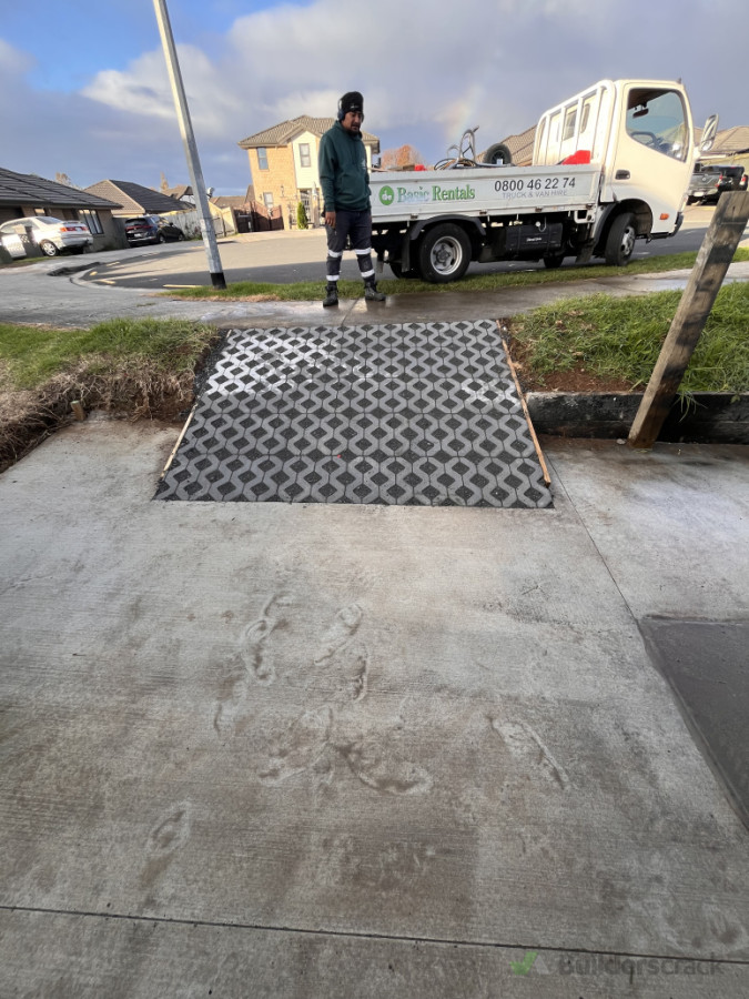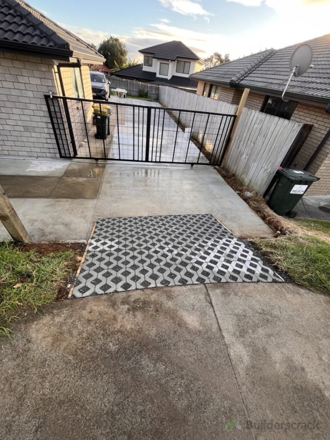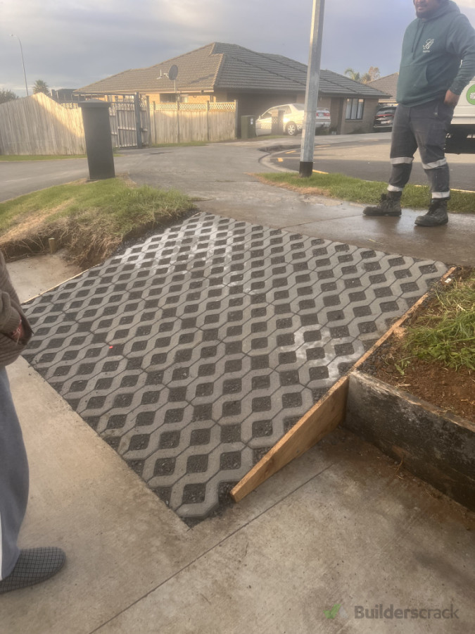 Driveway ramp with pavers.