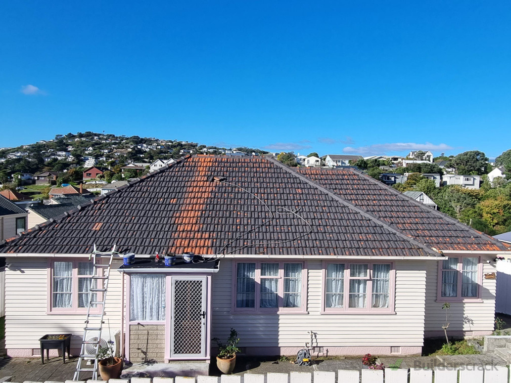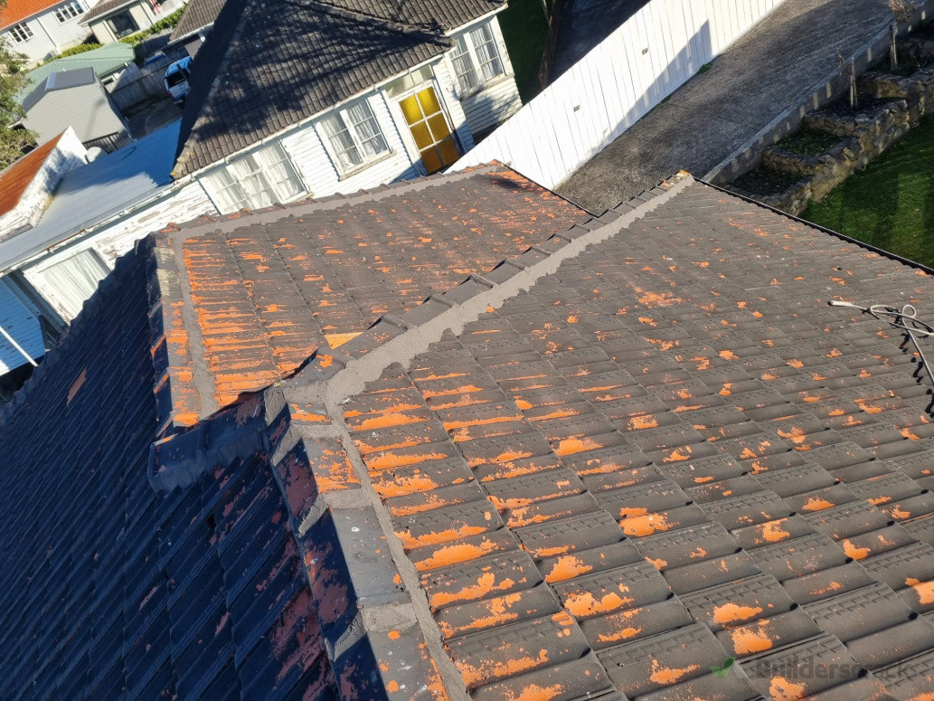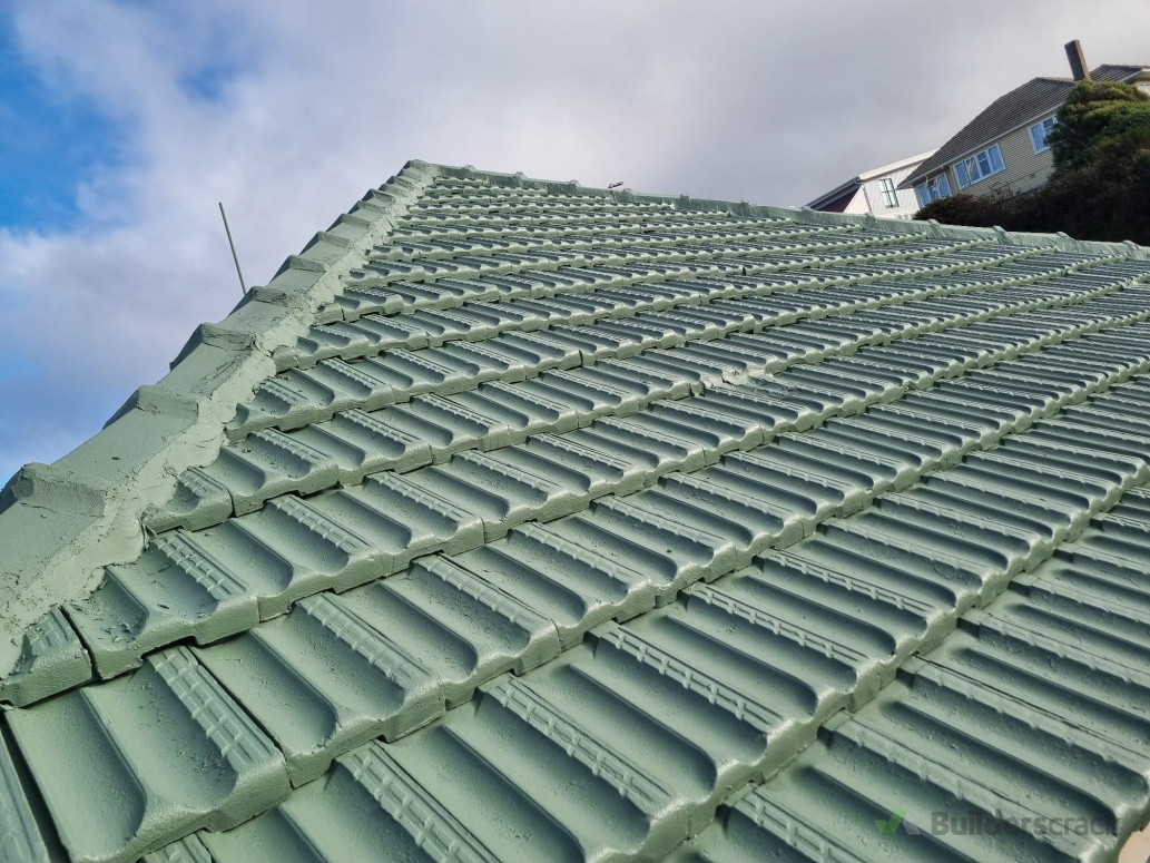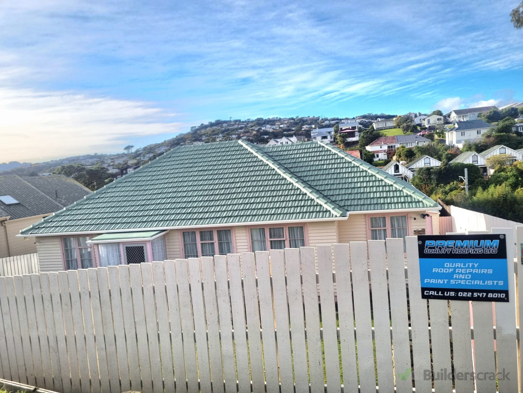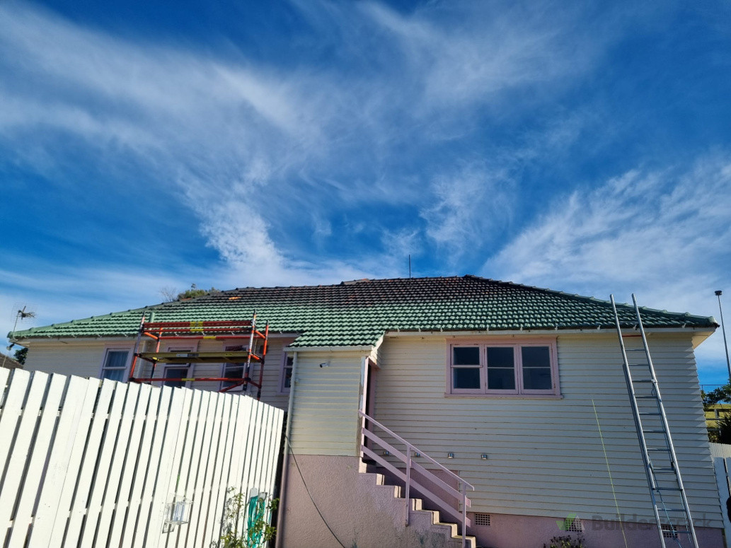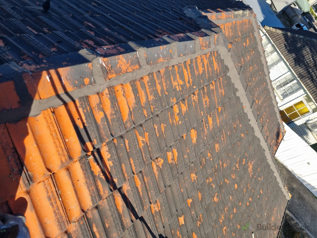 Full Roof Repair includes full repointing, replacement cracked tiles, painted River gum color, and install new spouting