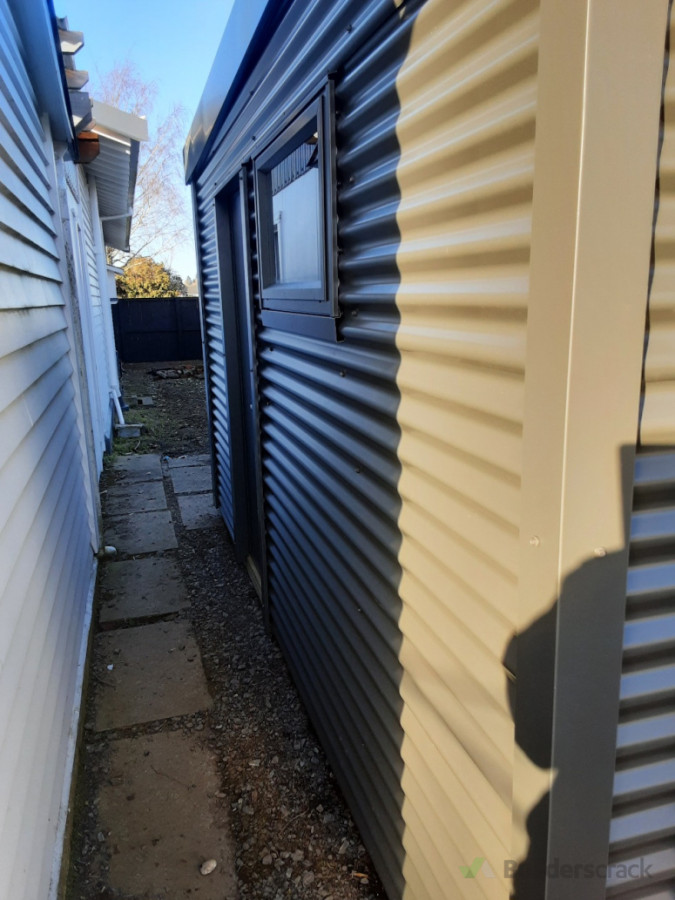 4mx2m full wrap, clearlight panel side door and window. Foundations prepped