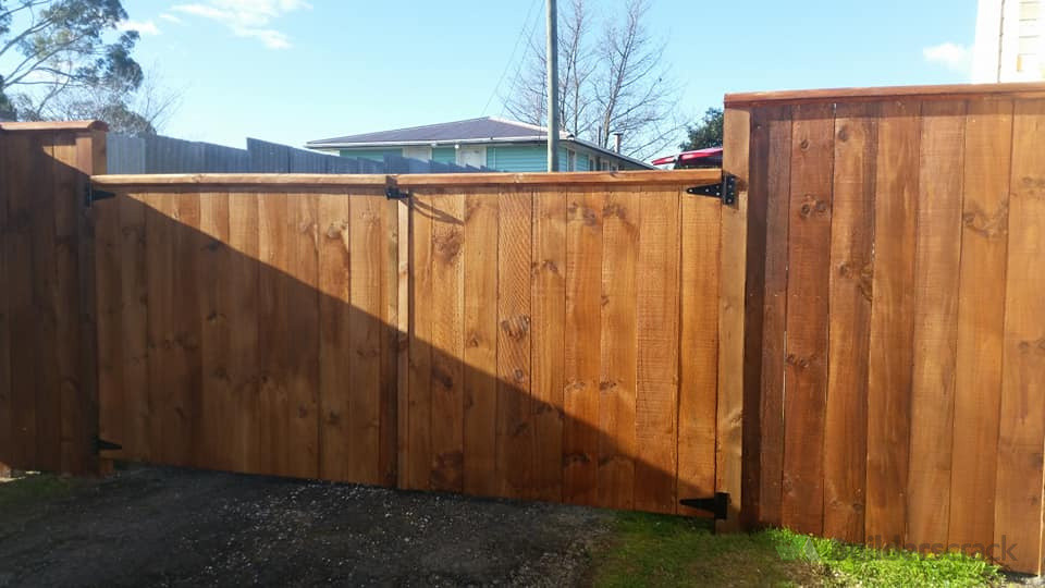 built for a client with a dog that needed a bit of security, took 3 days all up to complete fence and gates plus the staining, we do it all