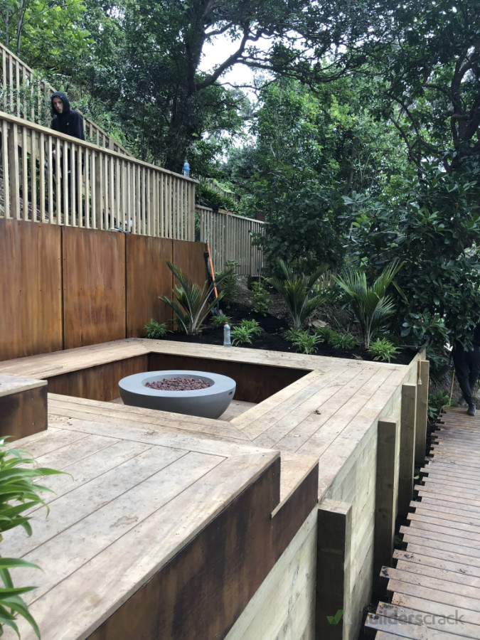 This project include a wild range of skills that I can offer, from the design of creating the access on a steep bush bank and the composition of all the elements included into this space. From creating set of stairs and platforms (12 staircases in this project) + handrails, retaining walls, wood work with the kwila decking and setting area and welding a steel bridge that you can see on the bottom park of the pictures