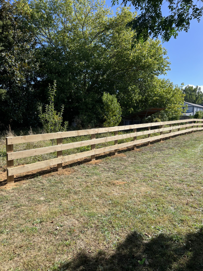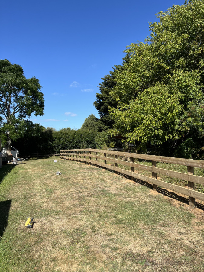 Post and rail fence build for the backyard of the property, 54m long with 3 rails