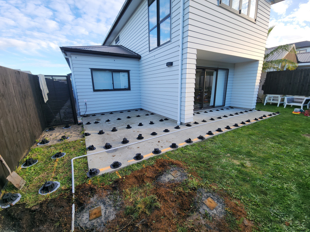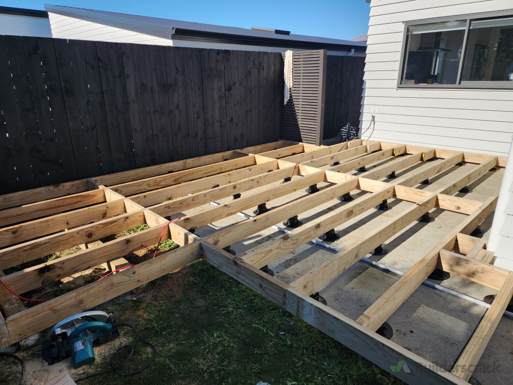 Kwila decking using Nurajacks, Nuraspikes and bearers for deck and spa pool area