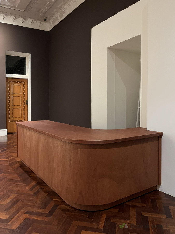Custom design and make front counter for an Art Gallery. Made using plywood and solid wood Jarrah features to work with the existing Jarrah flooring.