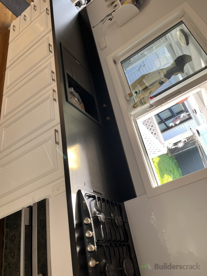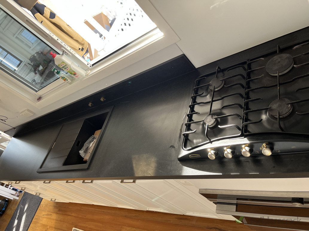 Replaced rotten formica top with black benchtop with professional finishing.