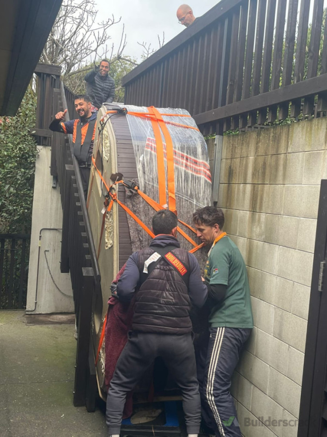 150m downhill, stairs, tight space — spa moved safely! 💪 No job too tough for Easyway Movers. 🚚