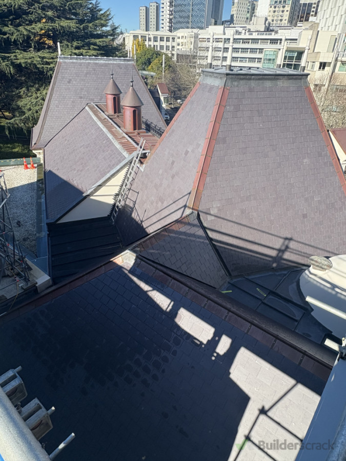Heritage and specialist work on auckland historical art gallery. Applying welsh slate, copper and lead metal work.