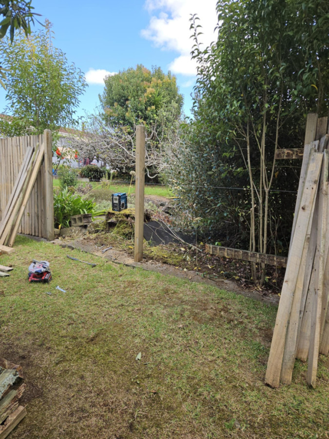 Repairs on the old perimeter fence, which had deteriorated and partially collapsed in one section.