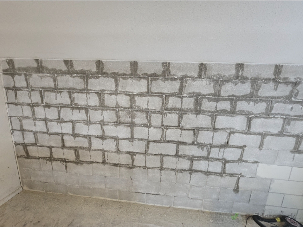 Filled the mortar with a crystalline product to help the mortar become stronger and to make the wall flush for plastering