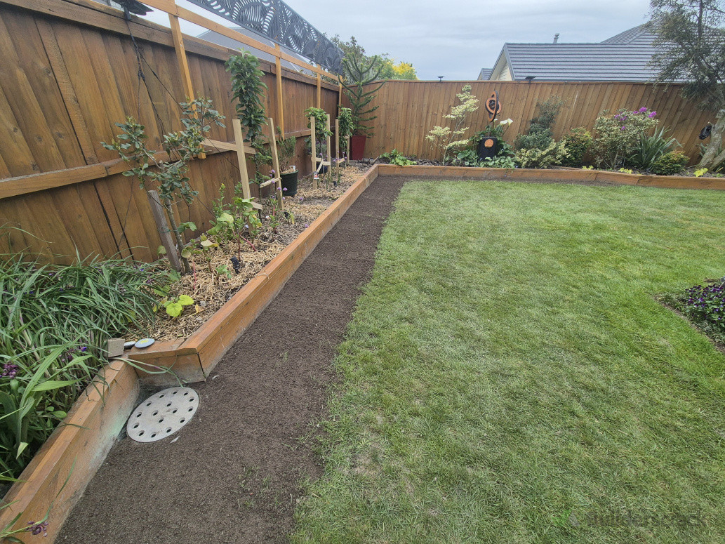 We were tasked with installing 30m of Subsoil drains to eliminate surface water pooling on the lawn against the raised planter boxes and direct the water into the existing onsite stormwater system via sump. This project was carried out meticulously with care around the nice lawn and garden areas with topsoil and re seeding the option for reinstatement.