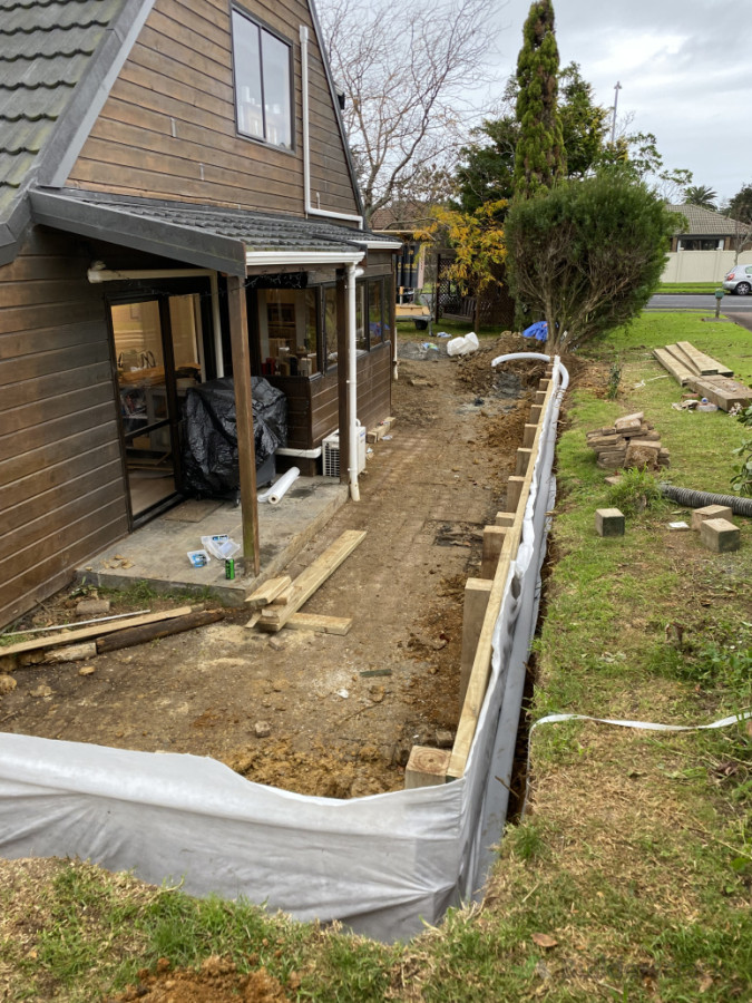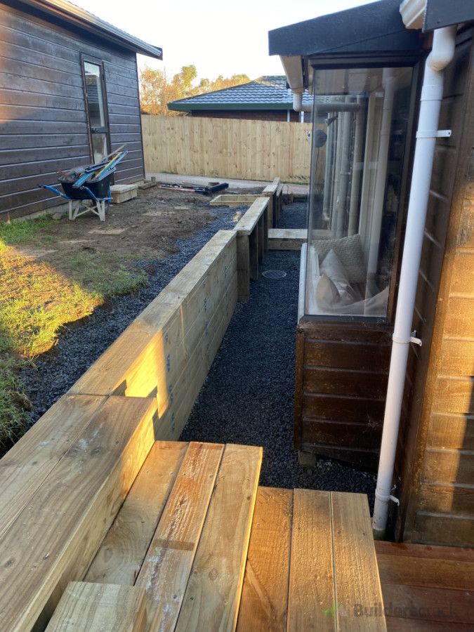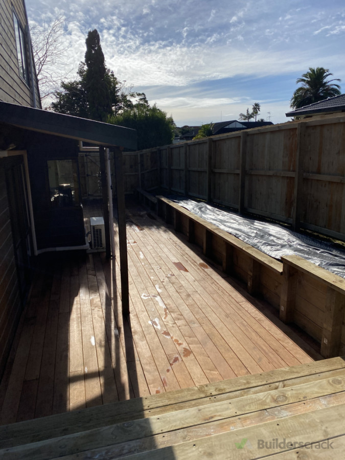 Replace retaining wall (30m), build Kwila deck (40m2) and replace fence
