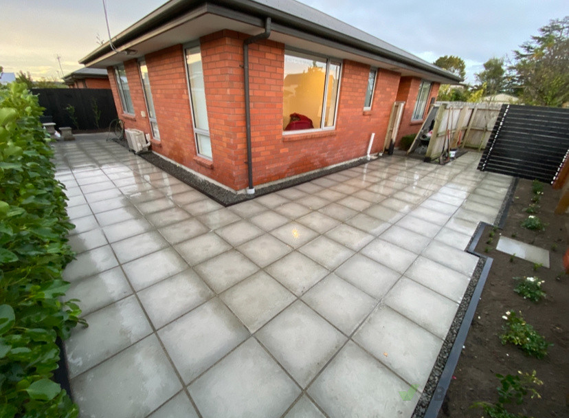 Replaced grass area with pavers and a timber screen