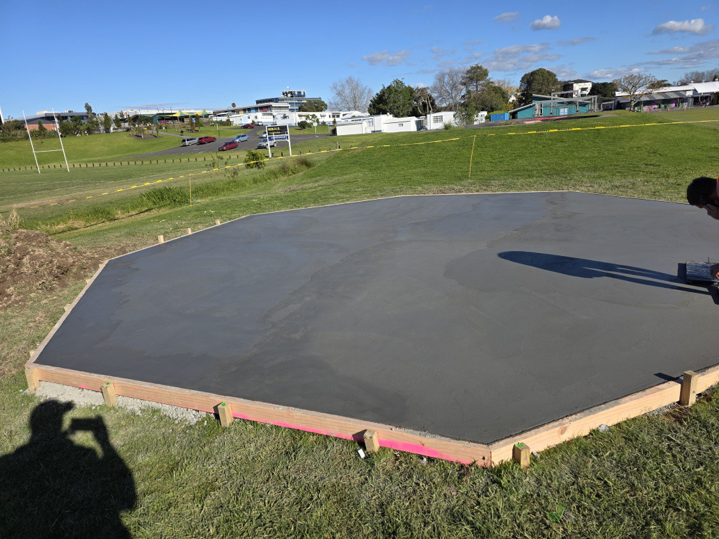 Here we scraped the layer of grass off put base in and then did the concrete pad!