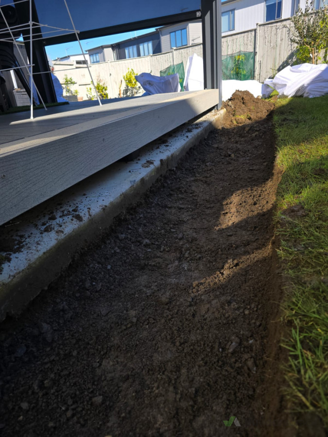 “This looks like a pathway next to the decking, designed for walking beyond the deck and enhancing the beauty of the green space in the back garden. The customer was very happy with the final outcome of the project.”