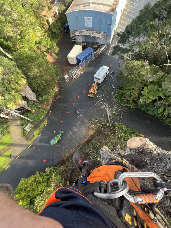 So he gave us a call and we came out an delt to them, over a 4 day period we rigged every limb piece by piece safely landing everything on the ground with zero damage.