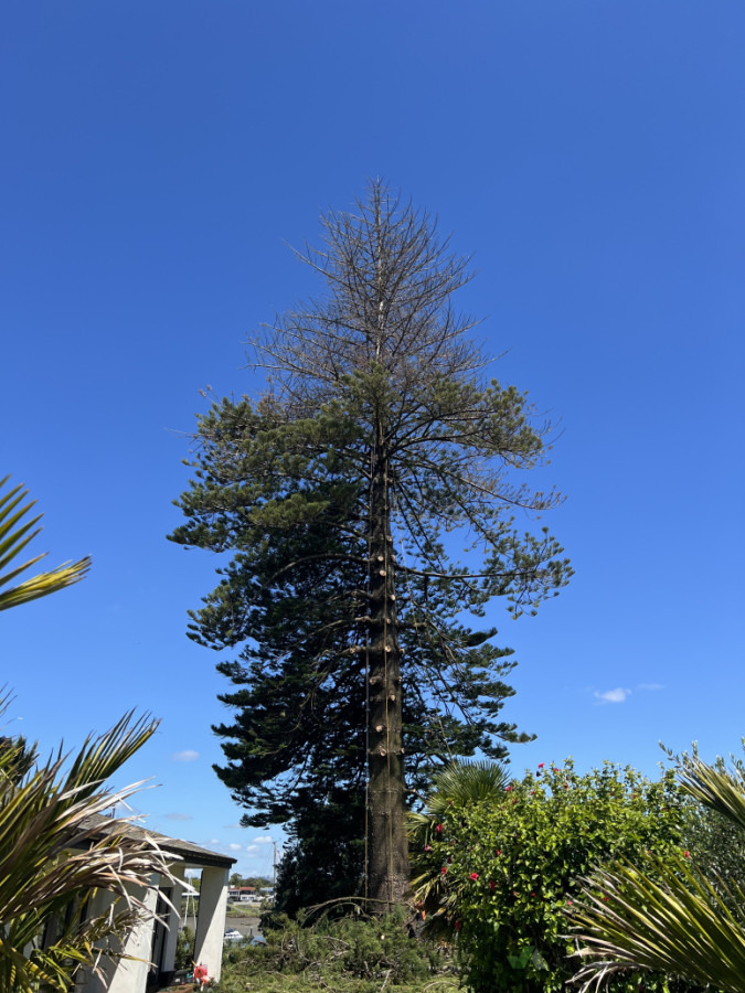 This old Norfolk was a previously protected tree towering above 2 houses and the Tamaki river at 42m high visible from the Panmure bridge.