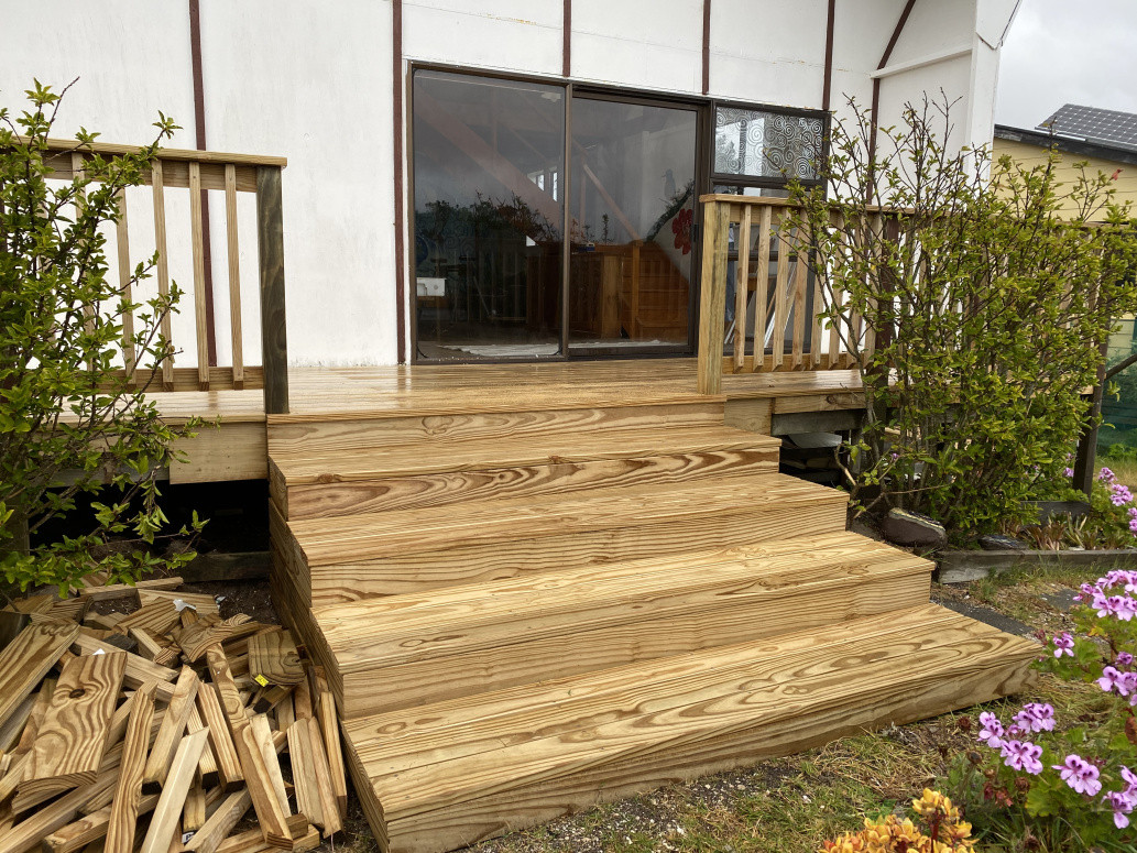 Comlpete house renovation with new flooring, kitchen, bifold doors and windows and new deck around the house.