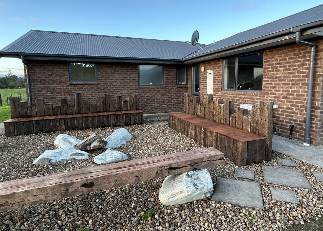 -Rail way sleepers with Kwila bench seats