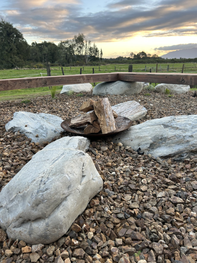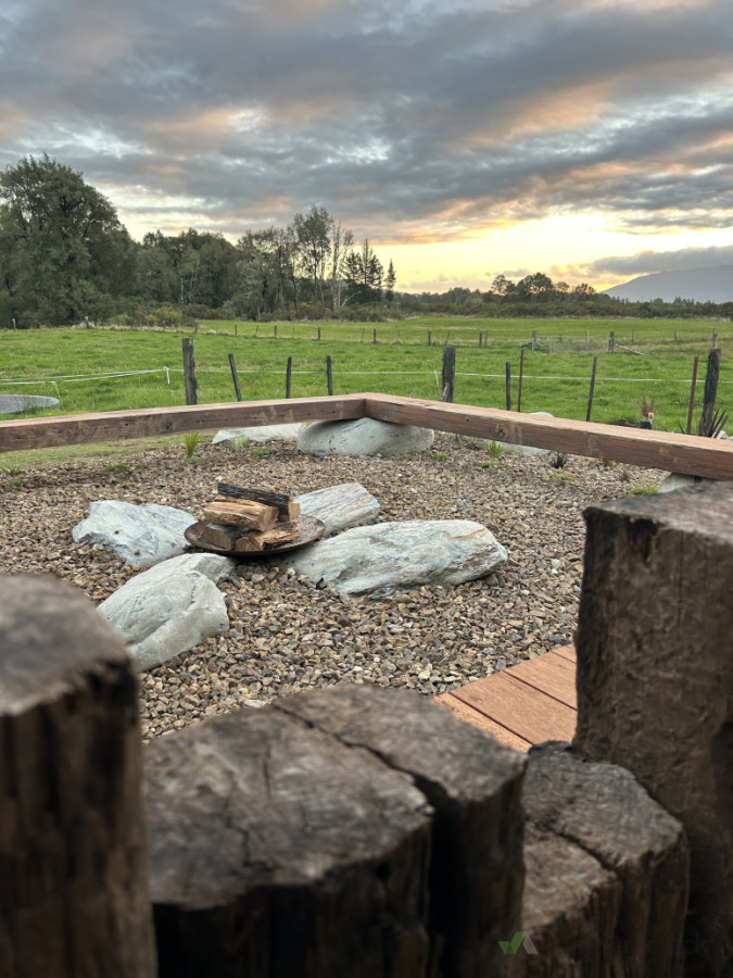 Outdoor area transformed with a rustic touch and natural vibes, an ideal spot to catch a sunset by the fire.