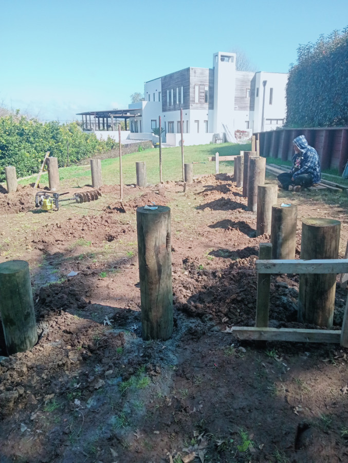 Me and my team worked on installing a new deck by putting up posts and concrete.