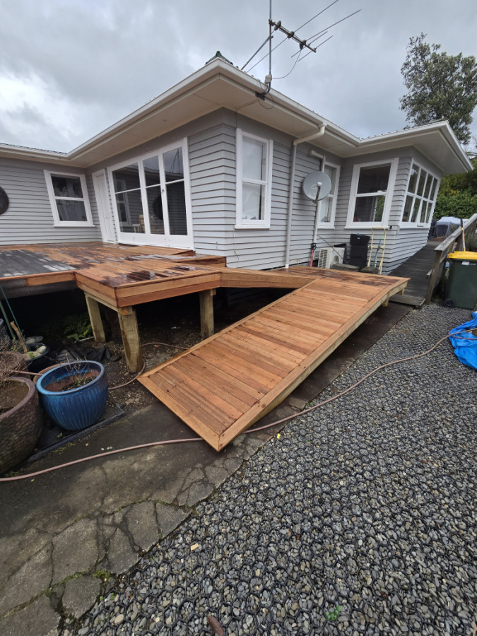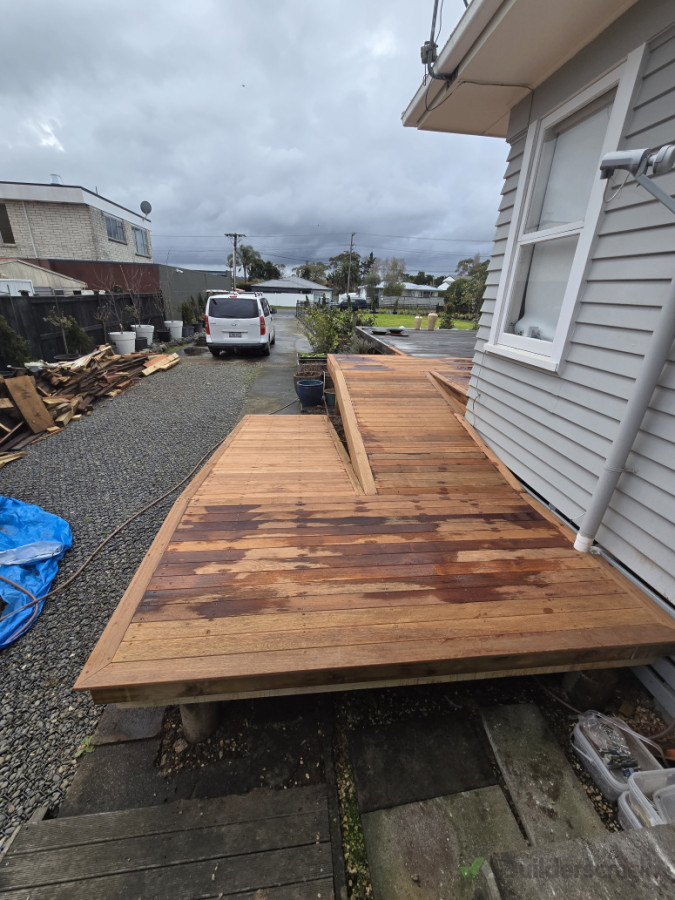 Partial decking replacement, replaced the pine decking around the more recent addition of a kwila deck extension (not by us).