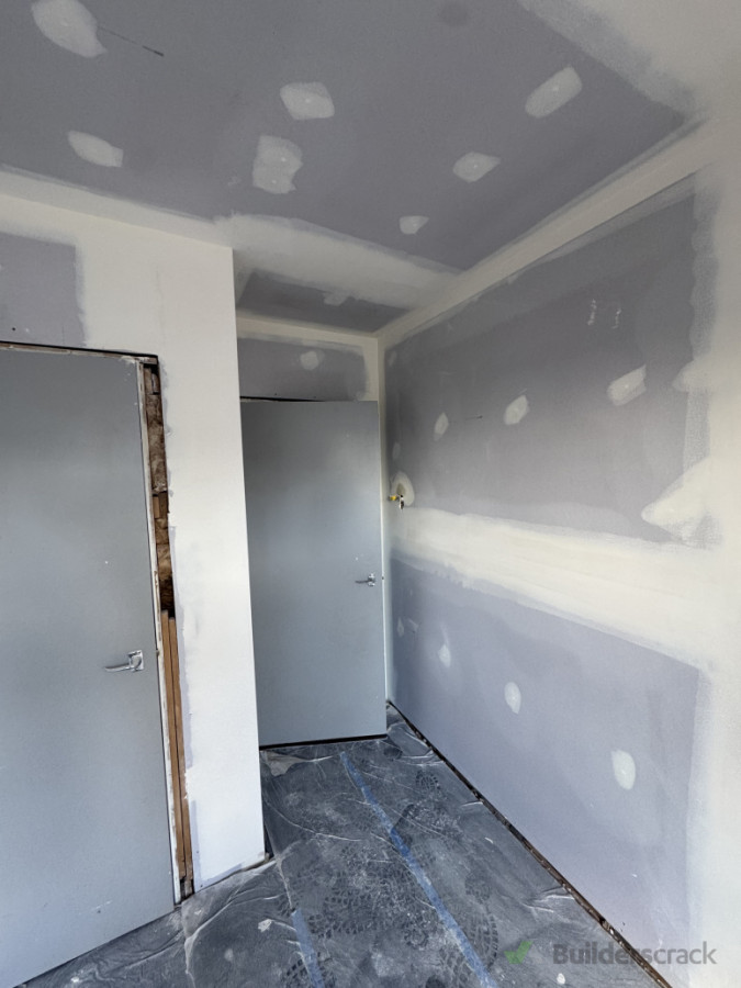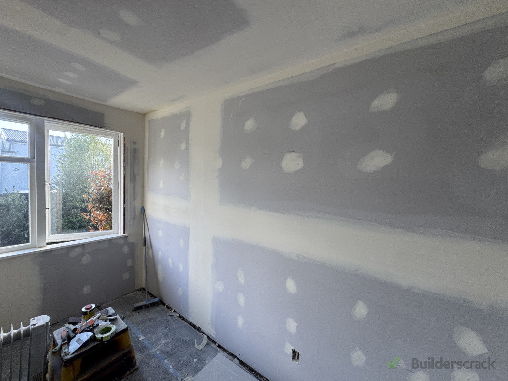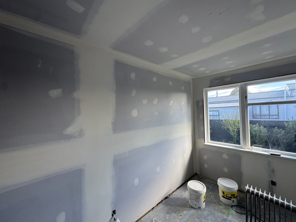 The walls were levelled as required, and the entire room has been re-gibbed and plastered to a professional finish.