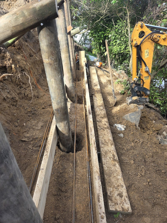 The old timber retaining wall had collapsed, so a new timber wall was built by us, Ascot Contracting Ltd