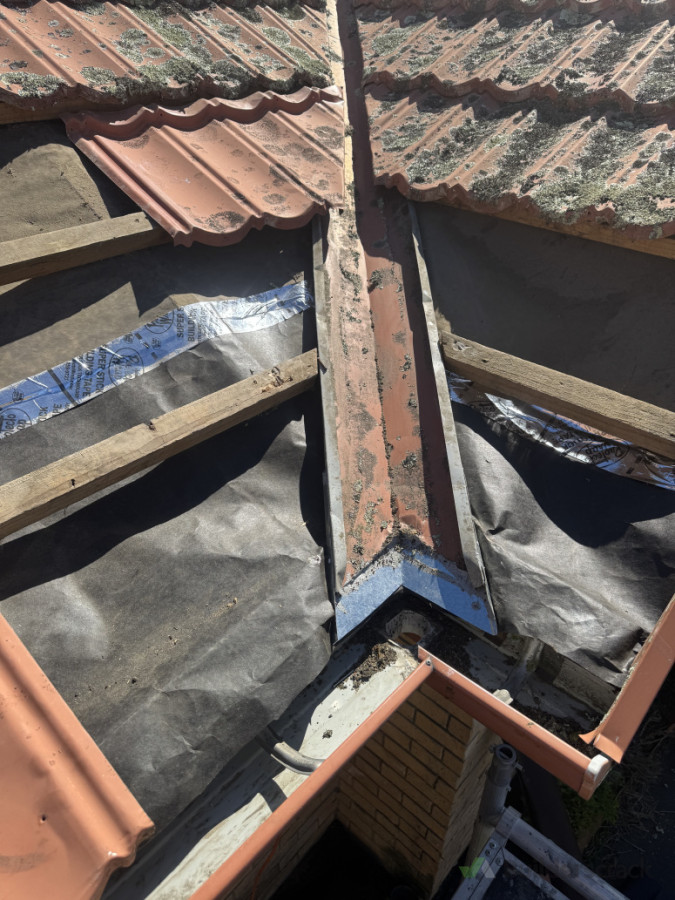 Extend valley flashing and building paper past spouting