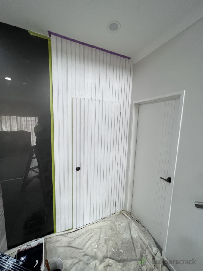 Honoured to have the trust of the homeowner on this one — a slick feature wall perfectly blended in to disguise the door, with minor touchups done professionally bringing everything together.