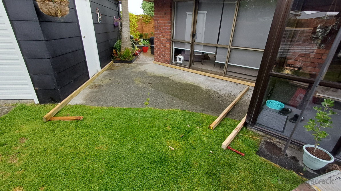 Floating deck on uneven concrete.
