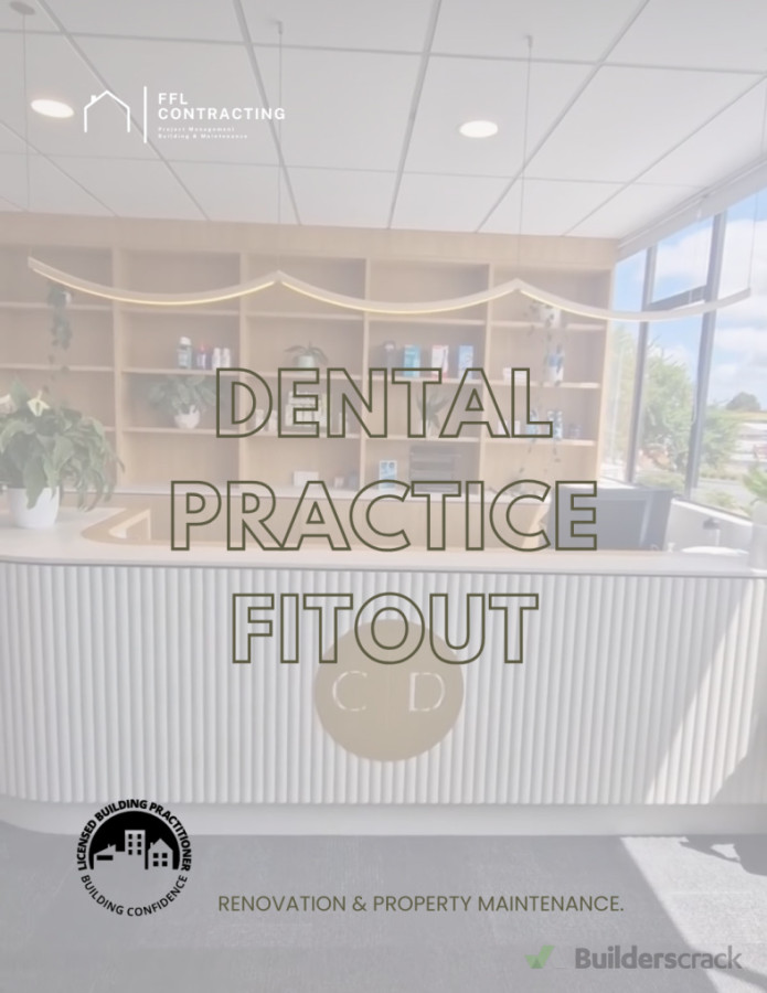 FFL Contracting completed a full dental practice fitout, transforming an empty space into a modern, functional clinic designed for both staff efficiency and patient comfort. Our team managed the entire project — from design coordination and consent requirements through to construction, finishing, and final handover.