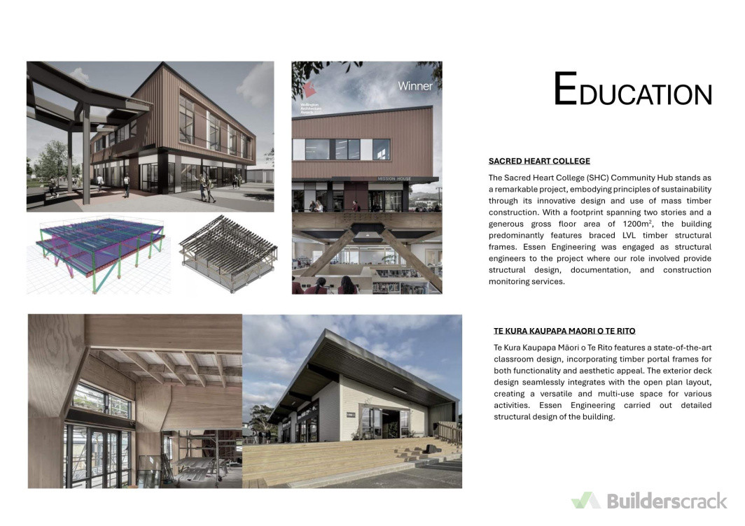 The Sacred Heart College (SHC) Community Hub stands as a remarkable project, embodying principles of sustainability through its innovative design and use of mass timber construction. With a footprint spanning two stories and a generous gross floor area of 1200m2, the building predominantly features braced LVL timber structural frames. Essen Engineering was engaged as structural engineers to the project where our role involved provide structural design, documentation, and construction monitoring services.