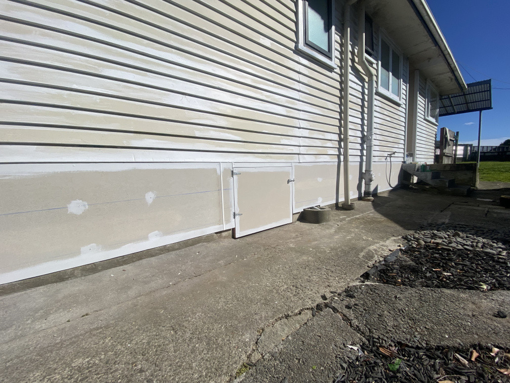 Underneath the house was rotting away, and it was time to fully replace the lower surrounding areas and add in a nice access hatch .