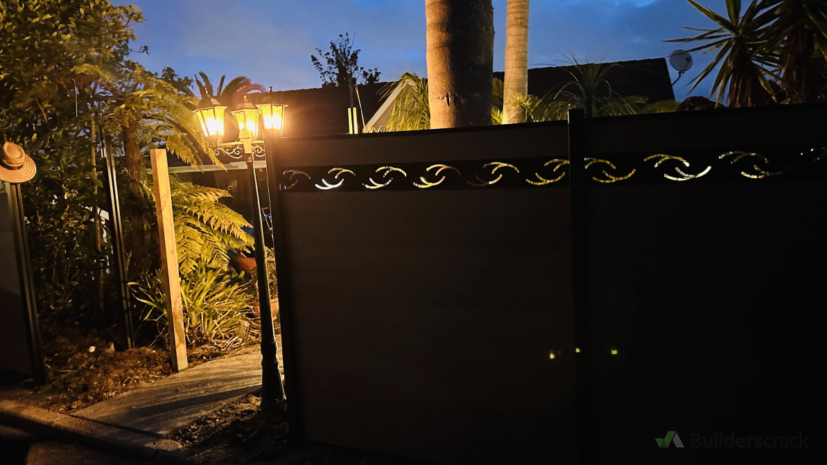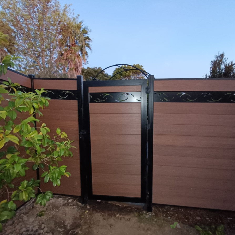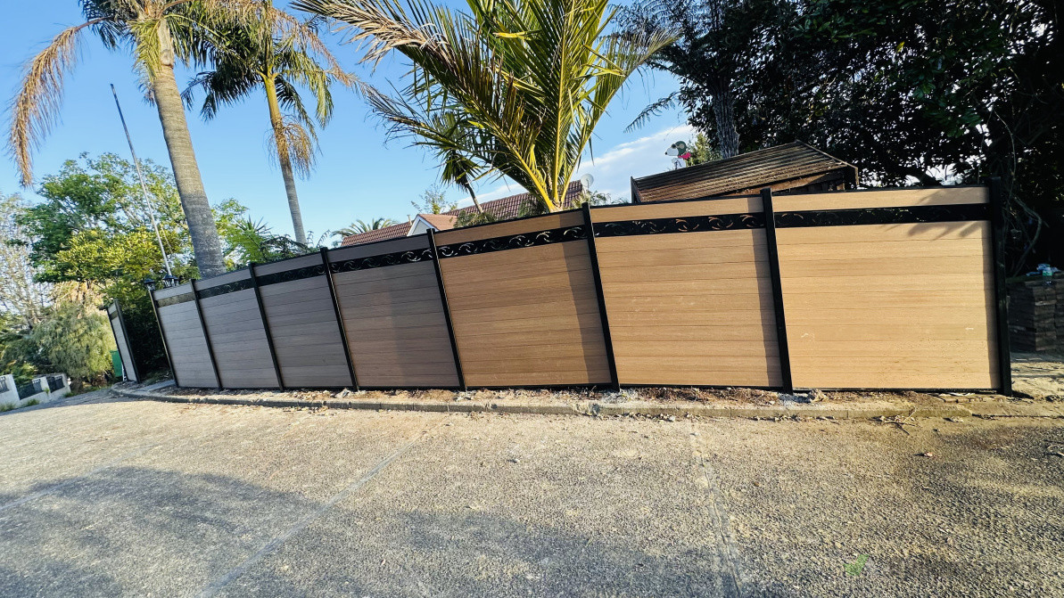 WPC fencing project with stake design on top, also pool compliant.