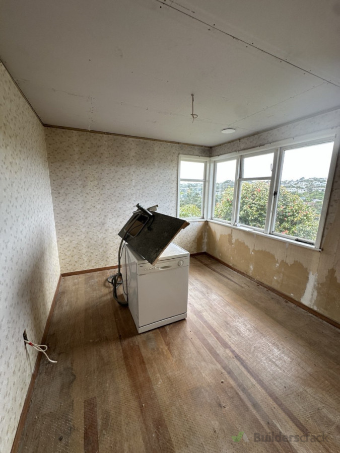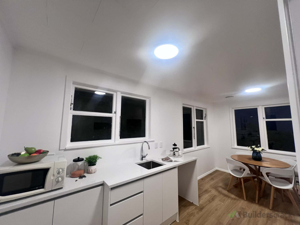 Wallpaper removal, Level 5 skim coat finish, new GIB installation (Level 4 finish), sanding, and full interior painting.