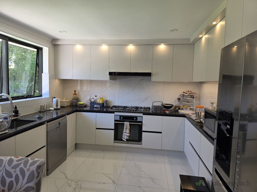 This project involved a complete kitchen transformation, starting from removing the old and outdated kitchen to designing, manufacturing, and installing a brand-new modern setup.