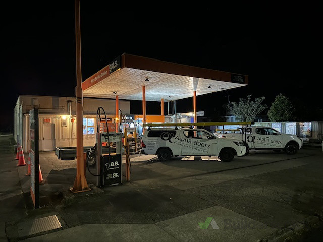 Installation of new shutter roller door over shop frontage.