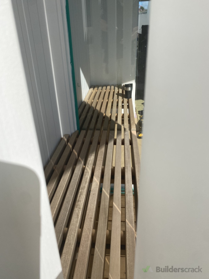 A bespoke bench seat that gives the appearance of going through the window from outside to in and vice versa.