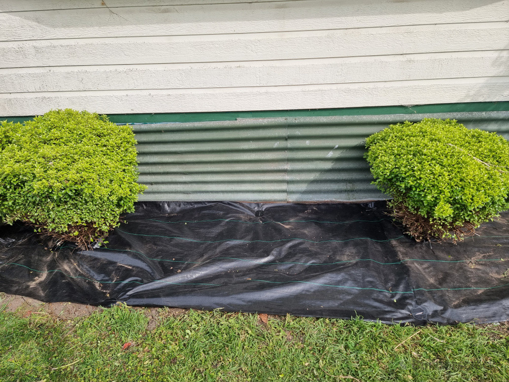 Performed Garden cleaning up and lay weed on the Garden bed to surpress weeds.