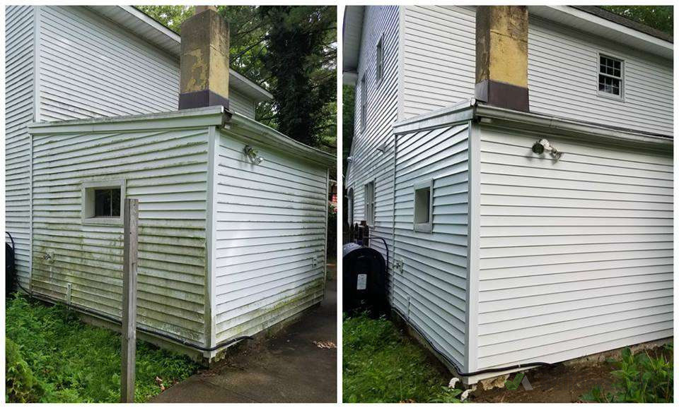 Complete exterior soft wash removing mould, algae, and built-up grime from vinyl siding, restoring a clean and refreshed finish without damage.