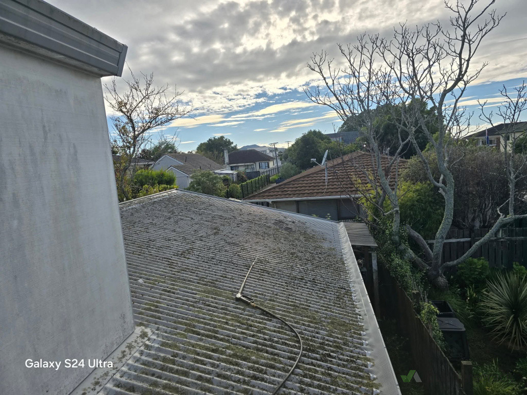 A full roof wash and repaint on a heavily weathered metal roof. Years of moss, and buildup were carefully removed using controlled washing, followed by detailed preparation and a fresh roof coating. The result is a clean, sharp finish that restores protection and brings the roof back to life.