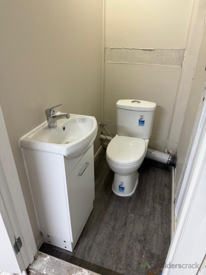 Complete bathroom renovation from A to Z, including installation of a new vanity and toilet.