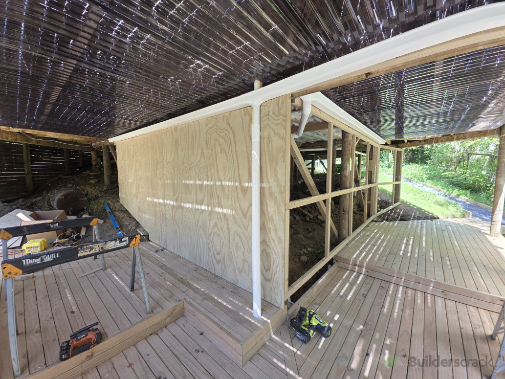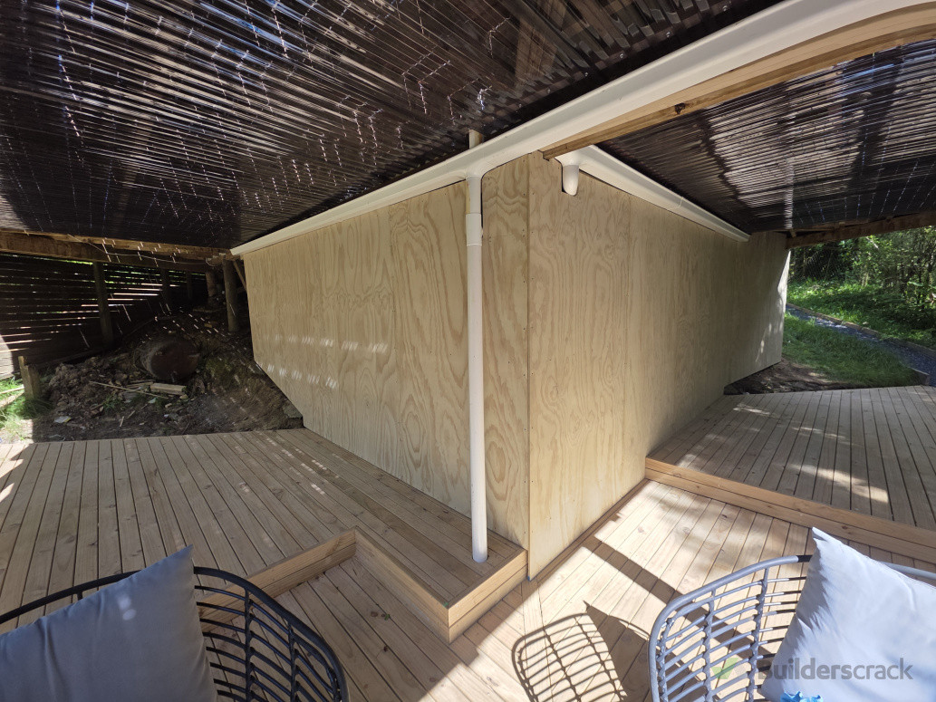 Build a deck under existing deck. Put roofing up underneath to guttering and install walls