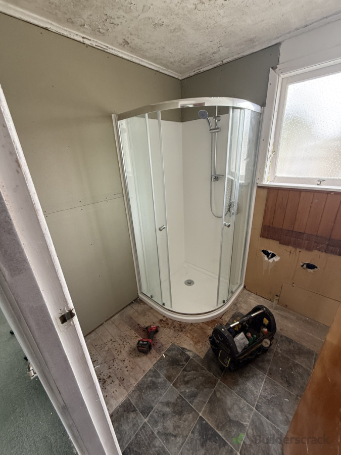 Complete renovation of bathroom from Bath tub to shower box and changing the damaged floor .