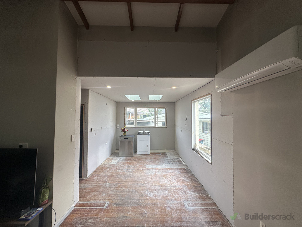 All linings in the kitchen and laundry were removed to allow for straightening for the new kitchen joinery, and adding/moving for services.